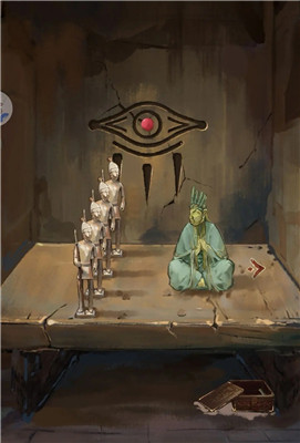 点击祭坛场景下方的箭头,石块掉落,阻挡了之前的门。点击地上的书籍翻阅,查看左下角的后续内容。