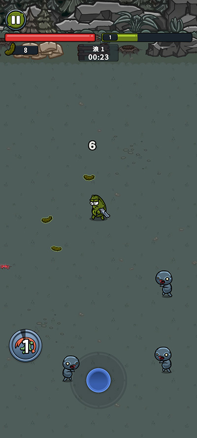 进入游戏后,使用虚拟摇杆控制你的腌黄瓜战士移动。