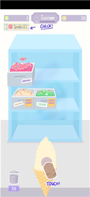 选择猫猫顾客,并按照其订单制作相应口味的冰淇淋。