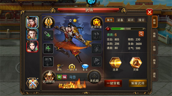 在游戏中,玩家可以通过武将升级、转生、进化等多种方式提升武将的实力。武将不仅能通过提升等级变得更强,还可以进行转生与进化,解锁新的技能和更强的属性,增强其在战斗中的表现。此外,神铸系统让玩家能够为武将锻造神级装备,从而大幅提升武将的战斗力。