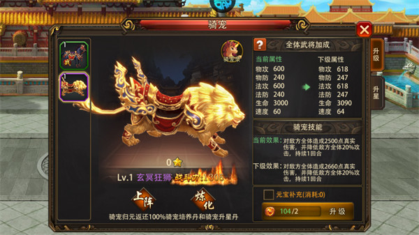 游戏中的坐骑、翅膀和战宠也可以进行升级、升星、炼化等多种强化方式。通过升级,玩家的坐骑、翅膀和战宠能提升基础属性,增强移动能力或战斗效果。而升星则能够让这些特殊系统的能力进一步强化,达到更高的层次。炼化则是通过对这些宠物或装备进行精炼,使其变得更强大,帮助玩家在战斗中取得优势。