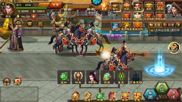 游戏中的装备可以进行强化、打造、升星、淬炼等多种操作。玩家可以通过强化来提升装备的基础属性,通过打造来获得适合武将的强力装备,而升星则能够进一步提升装备的稀有度和属性。淬炼系统让玩家可以对装备进行精炼,提升其附加效果,使装备在战斗中发挥更大的作用。
