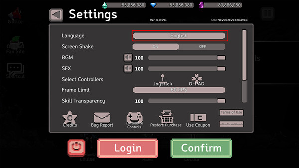 1. 游戏初次进入时默认是英文界面,首先点击屏幕上方的设置按钮(通常是齿轮图标)。