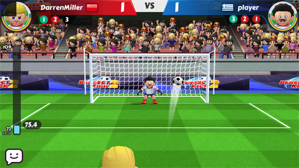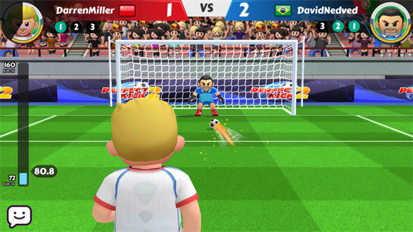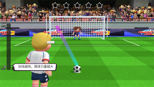 在比赛中,你需要滑动屏幕来控制球的方向。通过向球门滑动手指,球会按照你划的轨迹飞向目标。如果你滑动得越快,球的速度也会更快,挑战对手时可获得更强的攻击力。