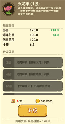 火龙果是一个拥有火系攻击技能的植物,能够发射火龙弹。每颗火龙弹命中敌人后会发生爆炸,造成一定范围内的伤害,并且会击退周围的敌人。这使得火龙果不仅能够对敌人造成持续的爆发伤害,还能有效地清除密集的敌群。