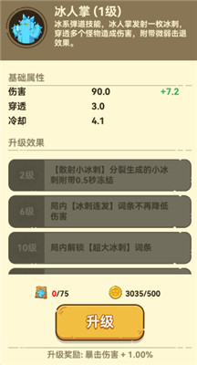 冰人掌是一个具有冰系弹道技能的植物,能够发射强力冰刺。冰刺可以穿透多个敌人,并对每个被击中的敌人造成伤害。除了伤害,冰人掌的冰刺还具有轻微的击退效果,可以稍微推开敌人,打乱敌人的阵型,控制敌人的推进速度。