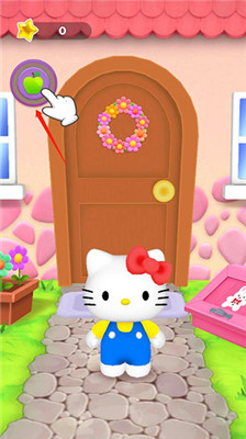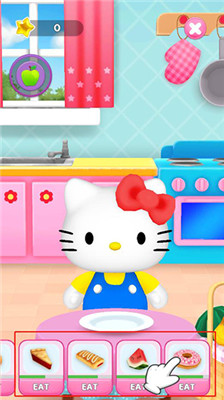 3. 凯蒂猫出现后,你可以点击屏幕上的苹果图标,给凯蒂猫喂食。选择不同的食物来满足她的需求,比如美味的甜甜圈、多汁的西瓜、香脆的面包等,让她每天都吃得饱饱的。