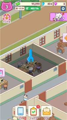 游戏初期,核心目标是积累基础资源,提高工厂的生产能力。你需要操控猫咪工人在赛道上奔跑,尽可能多地收集砖块,并将其兑换为金币。建议优先解锁1-2张办公桌,以便雇佣员工,从而加快生产进度,提升收益。合理规划办公区域,为后续发展奠定坚实基础。