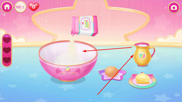 在蛋糕制作页面,你需要将制作蛋糕所需的各类原料拖动到碗中。确保每种食材都按顺序放入,以保证蛋糕的口感和质量。耐心地完成这一步骤,才能为客人制作出最美味的蛋糕。