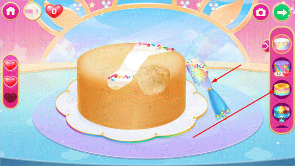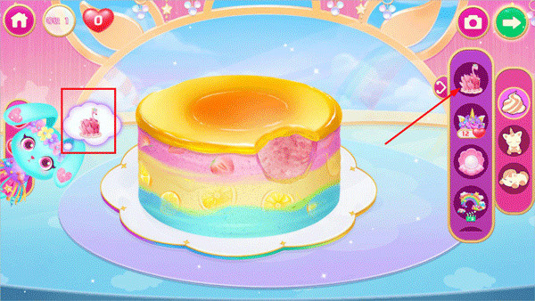 蛋糕烘烤完成后,选择右侧的蛋糕颜色,并用涂抹工具将其均匀地涂抹到蛋糕坯上。你可以根据客人的喜好调整颜色和装饰,让蛋糕看起来既美味又具有吸引力。