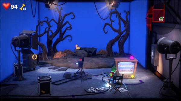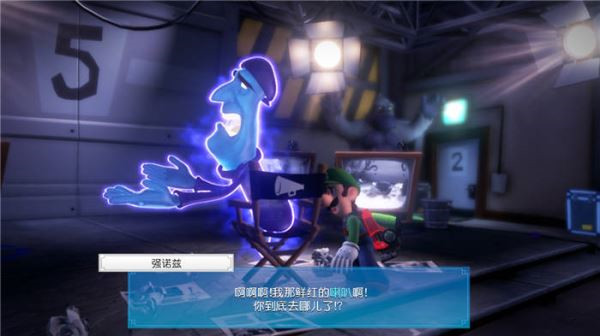 3. 进入房间后,会发现一个鬼怪导演正在现场,它的手上拿着电梯按钮。不过,我们无法直接从它那里获取按钮,而是需要帮它找到红色喇叭,完成它的电影拍摄任务,才能顺利拿到按钮。