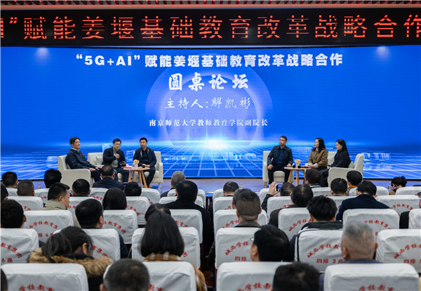 活动的另一亮点是圆桌论坛,围绕“‘5G+AI’赋能姜堰基础教育”的主题展开讨论。论坛由解凯彬教授主持,江苏省教科院数字教育研究所所长赵华,南京大学计算机学院教授郭延文,以及姜堰区教师发展中心教科研部负责人等专家参与了讨论。