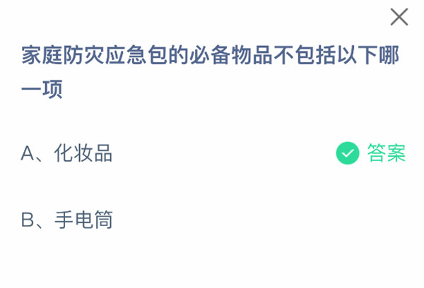 2、家庭防灾应急包的必备物品不包括以下哪一项