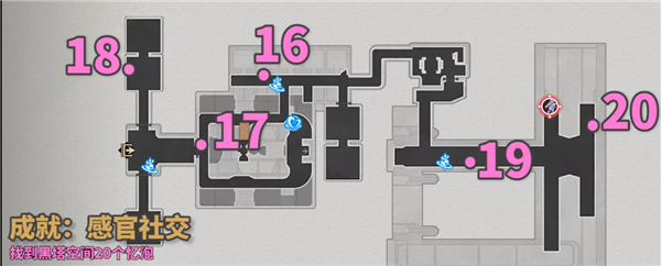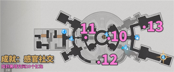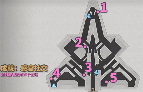 完成前置的黑塔人偶成就-随弃随用后,才能解锁后续的忆泡全收集隐藏成就-感官社交,需要注意哦。空间站黑塔人偶位置一览