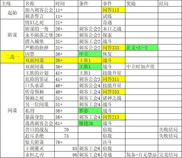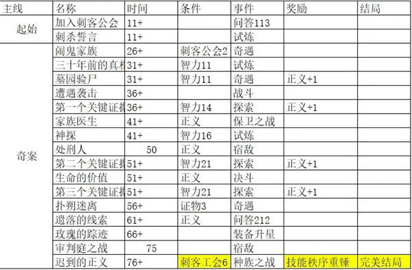 由于中间要求王族声望1级,邪恶,敏捷26,所以前期一定要做一个王族声望的事件,尽量保持邪恶。36之前路线不变,36-39选择条件为王族1的双面间谍,41-44双主线,46-49双主线,51-54双主线,56-59双主线,61-64单主线,70宿敌(没打过达到失败结局),75宿敌(没打过达到失败结局),76-79单主线,85宿敌,86奇遇,完成获得装备百无禁忌。