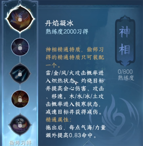 尤其是最高级的丹焰凝冰,能够在对敌人造成属性伤害的同时,给自己提供增益或者对敌人提供减益,精通后还能额外力量属性提升命中属性,非常强力。