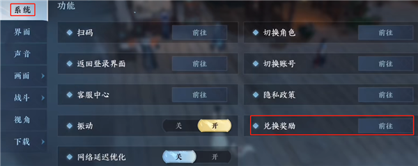 2、进入入游戏后,点击右上角菜单,在系统界面选择“兑换奖励”,输入兑换码“NSHNB”,即可获得大神奖励。