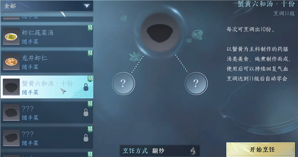 在逆水寒手游中的江湖开放世界中,玩家会遇到各种各样的奇遇和事件,会遇到性格各异的NPC,还能体验不同的身份。其中有很多选择了烹调身份的玩家都想知道游戏中的烹饪配方有哪些。我已经整理了目前游戏中的烹饪菜谱大全,希望可以帮助到大家。
