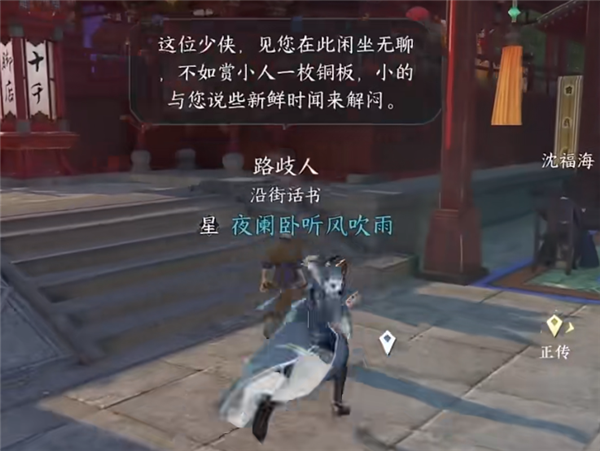 1、我们需要在汴京城(1060,880)找到NPC路岐人触发奇遇“锦伞红衣”,对话选项记得选赏他一文钱。
