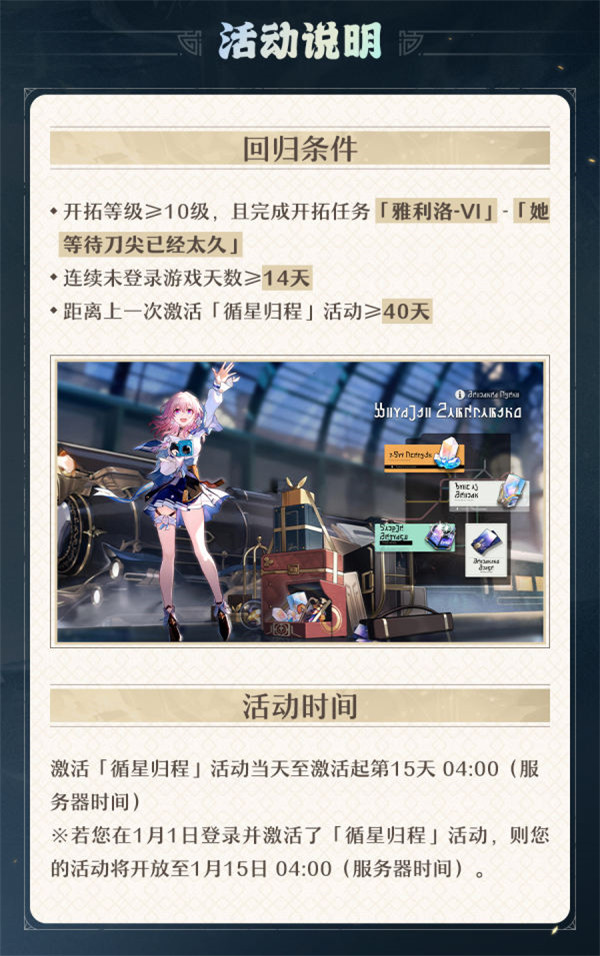 3、距离上一次激活「循星归程」活动≥40天