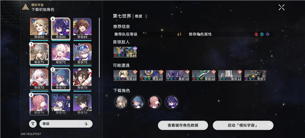 个人推荐火主+奶妈+艾斯妲+主C,主C推荐冰系的彦卿、量子的希儿或者高练虎克。打低难度的第七世界可以使用姬子速通。