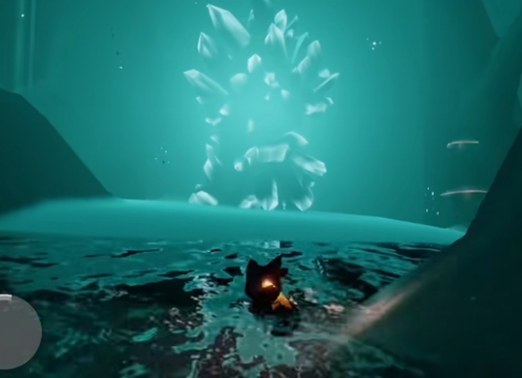 4、而在第二个矿石旁,玩家可以在这潜入水中,在水底洞深处有个巨大矿石。