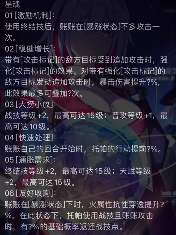 崩坏星穹铁道里有很多人气角色目前暂未加入1.2版本卡池,但相信很多小伙伴都非常期待后续新角色的正式上线。我近期根据测试服的最新数据,为大家带来了后续新角色托帕的最新情报,来和大家分享一下托帕的技能和星魂。