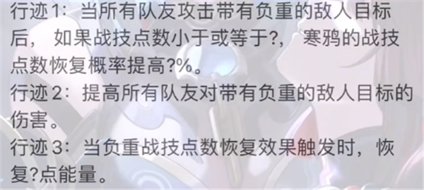 崩坏星穹铁道里有很多人气角色目前暂未加入1.2版本卡池,但相信很多小伙伴都非常期待后续新角色的正式上线。我近期根据测试服的最新数据,为大家带来了后续新角色寒鸦的最新情报,来和大家分享一下寒鸦的技能和星魂。