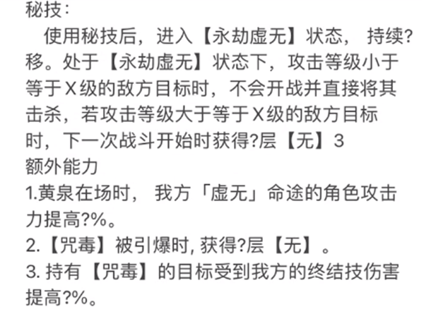 崩坏星穹铁道里有很多人气角色目前暂未加入1.2版本卡池,但相信很多小伙伴都非常期待后续新角色的正式上线。我近期根据测试服的最新数据,为大家带来了后续新角色黄泉的最新情报,来和大家分享一下黄泉的技能。