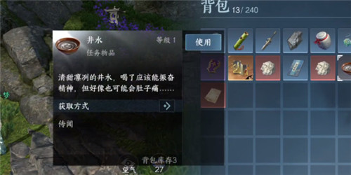 2、再来到灵隐寺找到智园对话并点击背包中的井水使用;