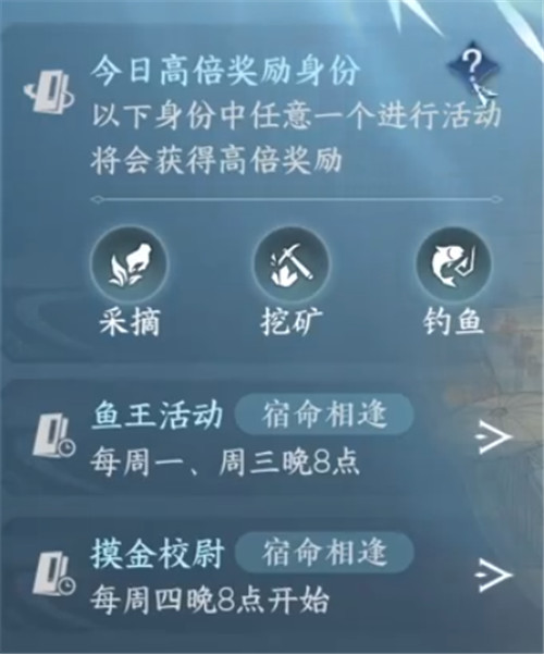 每天的指定身份会在下面四个组中随机出,建议选择性价比高消耗活力低的玩法进行