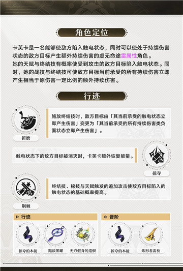 普攻可以对指定敌方的单体造成雷属性的伤害,战技可对指定敌方单体及相邻目标造成雷属性的伤害,终结技对敌方全体造成雷属性的伤害。