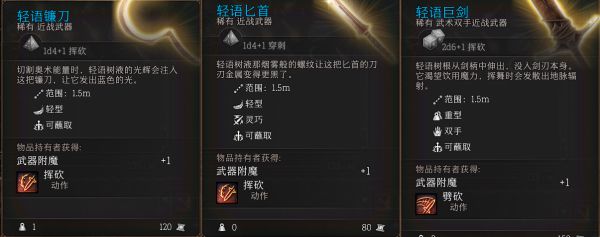 4.轻语系列的武器,除了+1以外,命中目标时会造成沉默效果,用来欺负施法者不错。