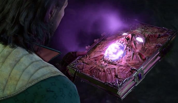 2、从后面的线索中玩家们可以得知,盖尔只吃亡灵书、德鲁伊林地的雕像、提尔神剑、鬼婆的法杖四种魔法物品,他可以从中获取力量变强。