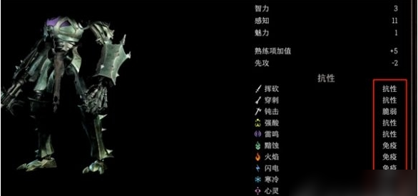 1、首先我们看一下复仇守卫的免疫属性,发现他有极多的的免疫项。