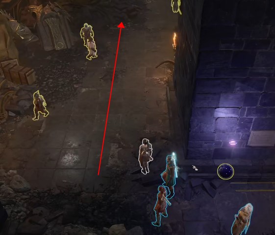 2、沿着图中的箭头走到两个台阶地点,能够发现两个尸体。