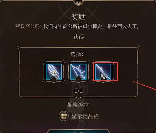 5、我们完成任务指引解救顾问弗洛瑞克之后,与她再次对话对话选择营救高公爵就能获得奖励,三选一奖励中可获取装备法术火花。