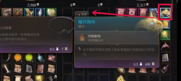 4. 在他的商店中,右侧第一排的倒数第一件就是爆炸饰环,直接交易就能够获得。