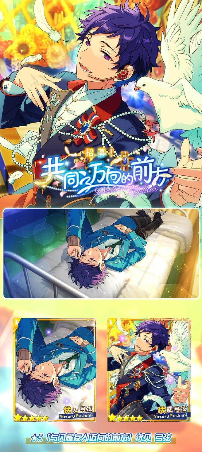 8月26日《偶像梦幻祭2》即将开启最新毕业典礼活动「波澜壮阔的梦之前方/与你并肩的毕业典礼」,偶像伏见弓弦最新五星限定卡也将在即将开启的限定卡池「招募!共同迈向的前方」中登场。制作人获得伏见弓弦本次的限定卡片后,都将解锁相对应的MV服装和房间服装喔!相信大家都很想知道获取方法了,小编已经帮大家整理好了,附带精美大图,快来看看吧!