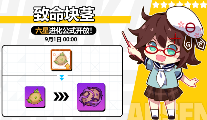 崩坏学园2武器致命块茎即将开放六星公式,致命块茎原本是地图武器呢,不过因为是高贵的毒属性强度还挺不错,是难得强度挺不错的地图装。最新消息,致命块茎(俗称土豆)也要喝到六星公式的汤啦,小编已经帮大家整理好信息了,同时间内游戏还会开放不少活动喔,快和小编一起看看最新的内容吧!