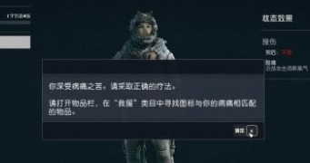 3、知道自己生的病之后打开物品栏的救援选项,就可以进行治疗了。