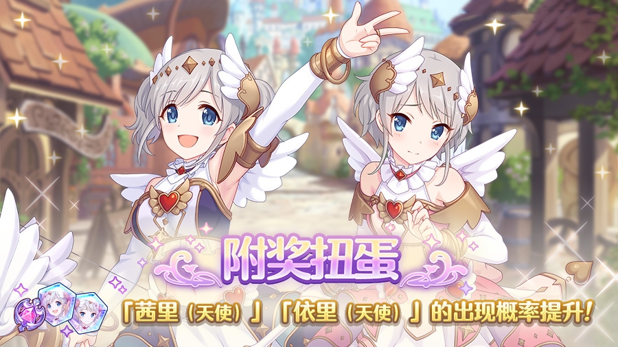 骑士君在附奖扭蛋中抽取到【依里(天使)】、【茜里(天使)】的概率提升,并且还能获得额外的奖品报酬。