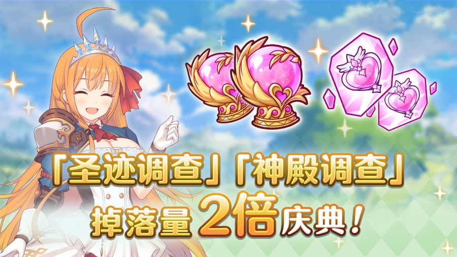 公主连结最新圣迹调查与神殿调查掉落量2倍庆典也将要开启啦,骑士君完成调查中的圣迹调查和神殿调查后,获得的报酬将是之前的2倍喔!相信骑士君们陪伴觉得想大量入手公主之心碎片、公主宝珠及装备道具来强化角色吧!小编已经帮各位骑士君带来本次庆典的开启时间啦,想多获得更多资源的骑士君快来看看吧!