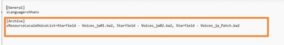 4、使用记事本方式开启starfield_ja.ini,也要备份一个,把红框位置的内容编辑到starfield_zhhans.ini下面保存。