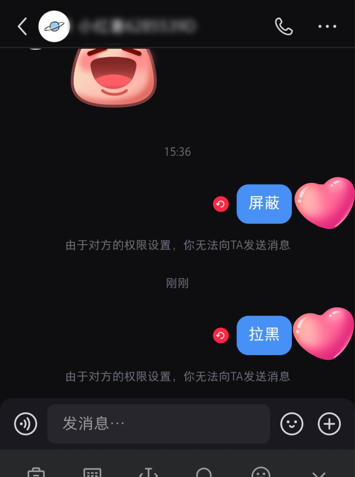 1、小红书区分拉黑和屏蔽要从对方的主页区分,因为不管拉黑还是屏蔽,我们给对方发消息时聊天框所显示的都是“由于对方的权限设置,你无法向ta发送消息”。