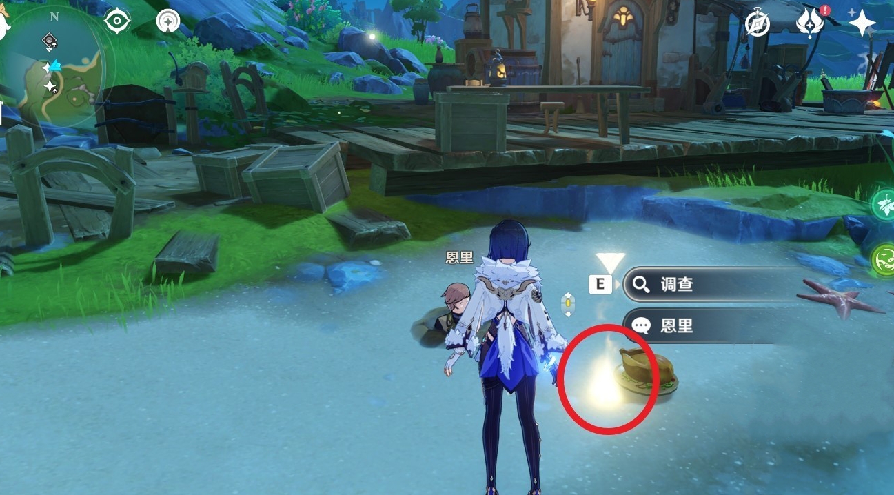 1、如图我们去白淞镇北边的海岸,在这里找到NPC恩里接取任务。