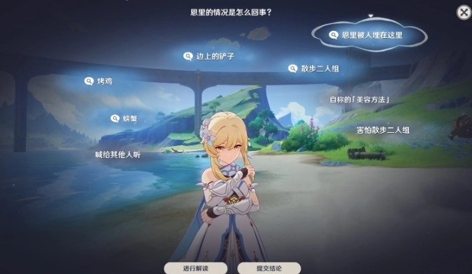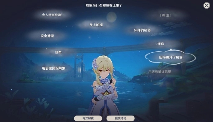3、调查之后和恩里对话进行第一次推理,选择如下: