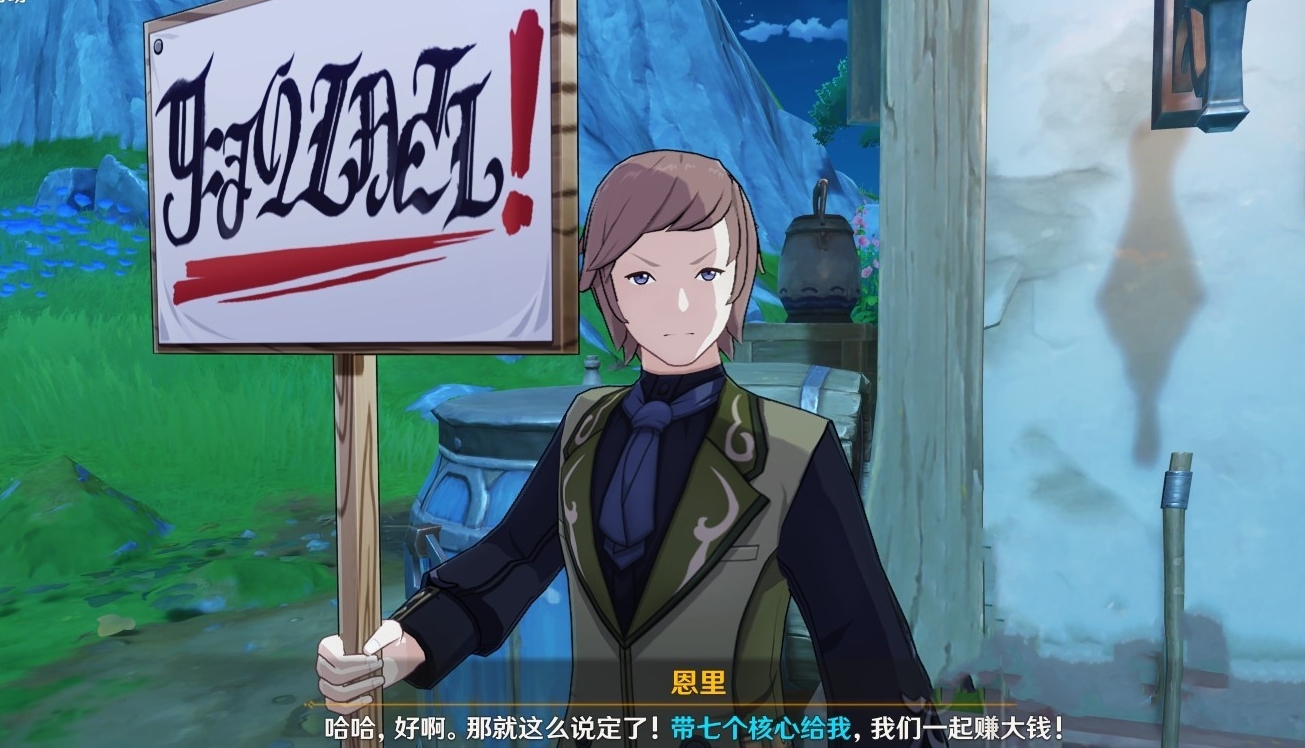 2、和恩里对话后调查3个光点,并和树下的黑衣人对话。