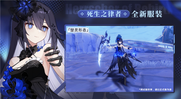 和死生之律者的初始服装有较大的差异,黑色与蓝色将是死生之律者全新服装的主色调。