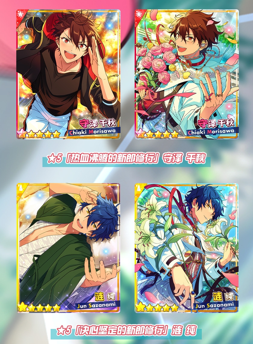 偶像梦幻祭2新郎修行婚礼进行曲卡池将在10月21日开启,这次的五星卡片是守泽千秋和涟纯,制作人们看到卡池预告是不是都非常激动啦?小编已经为制作人们带来本次卡池的全部信息了,新的卡片都非常精美,赶紧和偶像们步入婚礼殿堂吧。